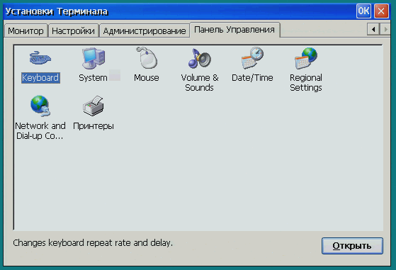 Так выглядит панель управления Windows CE на терминале