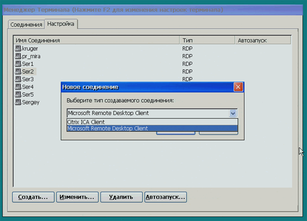 При создании нового соединения выбирается тип используемого подключения — либо это клиент Microsoft удаленного доступа к рабочему столу, либо клиент Citrix.