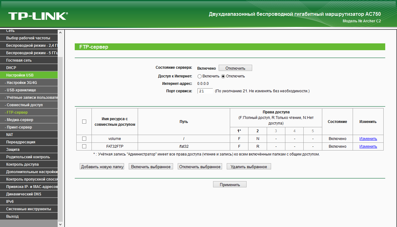 Кроме работы по протоколу сетей Windows, можно подключиться к диску и по FTP. При этом для сервера можно изменить номер порта, а также разрешить доступ к нему из интернета.