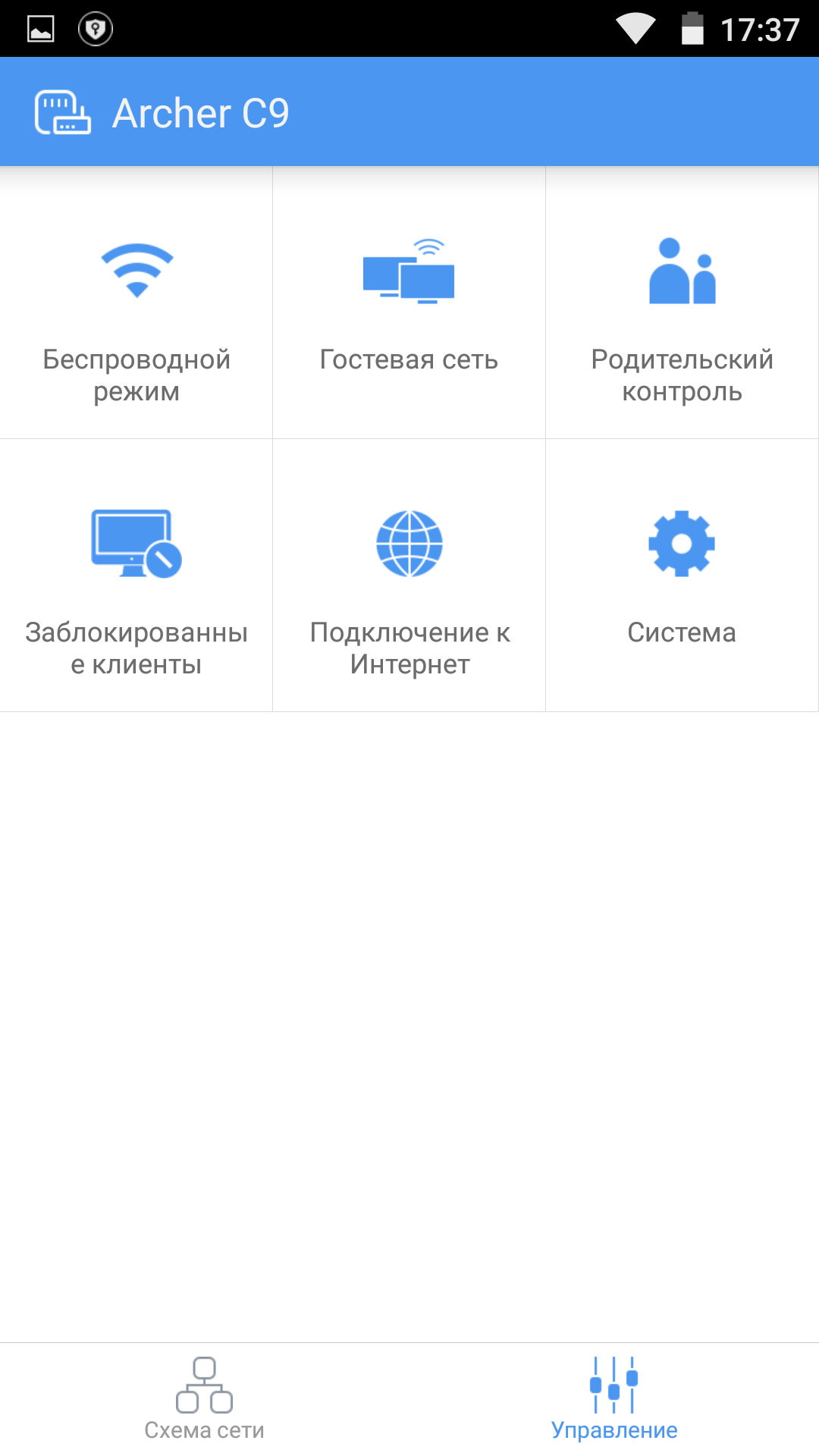 Компания также предлагает фирменную мобильную утилиту TP-Link Tether. В ней можно посмотреть подключенных к роутеру клиентов, настроить беспроводные сети, родительский контроль и некоторые другие параметры, а также перезагрузить роутер.