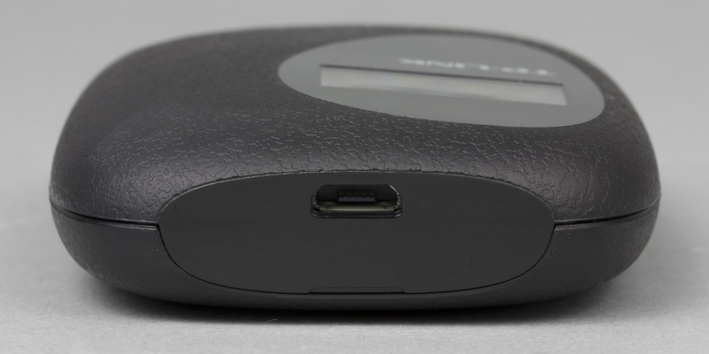 Он имеет размеры около одного дюйма по диагонали, изготовлен по технологии OLED и показывает статус соединения с сетью провайдера, уровень заряда батареи, название оператора, поступление новых SMS-сообщений, текущие скорости и общий объем трафика. Для экономии энергии экран во время работы обычно выключен. Включить его можно коротким нажатием на кнопку питания, которая находится рядом. Отметим, что кроме этого экрана никаких других индикаторов на устройстве нет и понять, работает ли роутер, можно только по нему.