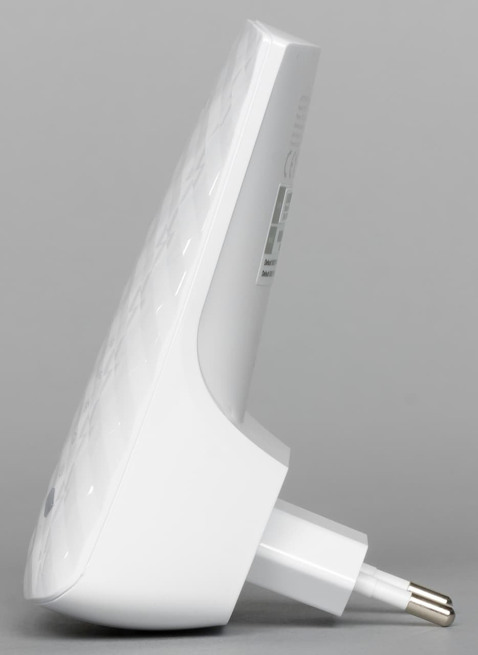 По внешнему виду модель получилась достаточно привлекательной и стильной. В частности это обеспечивается относительно небольшими размерами — без учета вилки они составляют примерно 65×38×110 мм. Форма корпуса также непростая и явно видно, что над ней поработали дизайнеры. Правда стоит вспомнить, что в конце лета 2013 года мы тестировали очень похожую внешне модель TP-Link TL-WA850RE.
