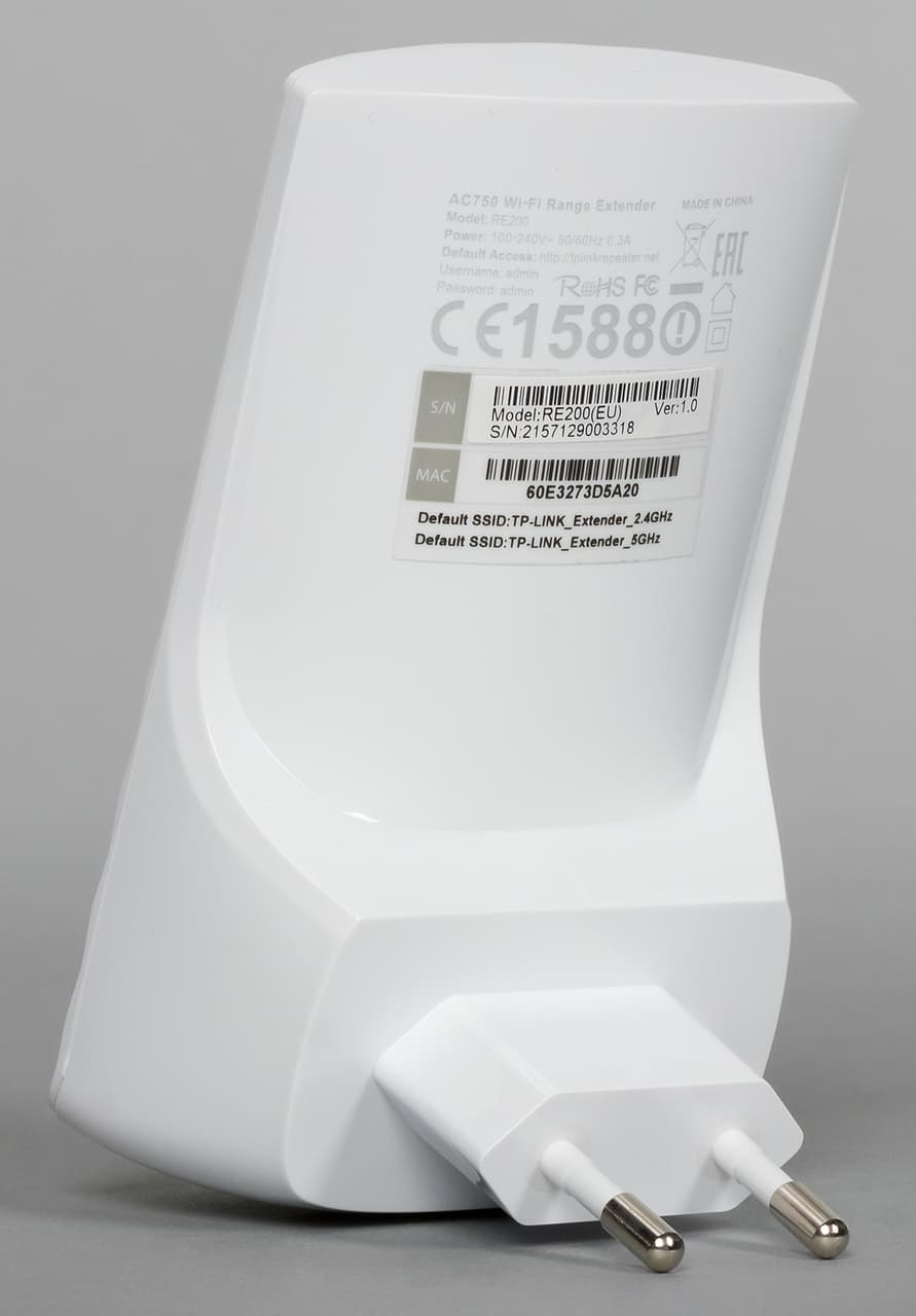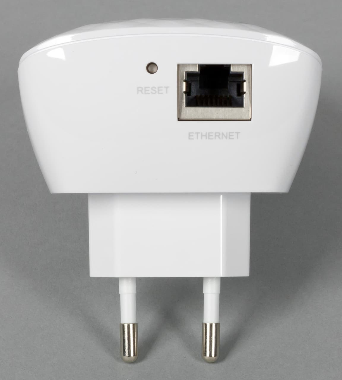 На нижней стороне корпуса находится порт проводной сети, а также скрытая кнопка сброса настроек. Несмотря на компактные размеры, отсутствие решеток вентиляции и встроенный блок питания, нагрев корпуса во время работы относительно небольшой. Заявленное энергопотребление повторителя составляет около 3,5 Вт.