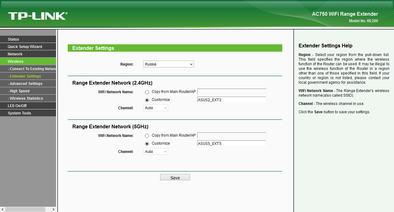 В частности вы можете изменить имена беспроводных сетей, которые создает повторитель, но пароль для них берется с основного роутера. Изменить номера каналов тоже не получится. Регулировка мощности радиомодулей отсутствует.
