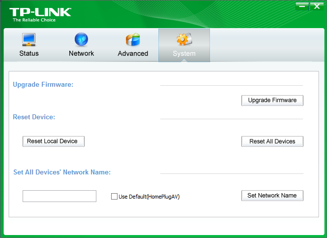 На последней странице находятся пункты обновления прошивки, сброса настроек и ручная установка имени сети. Напомним, что при использовании общей среды (электропроводки) вы можете одновременно организовать в ней несколько непересекающихся сетей до 32 устройств в каждой, при этом защита от перехвата данных использует шифрование AES-128 на основе имени сети, а общая пропускная способность проводки будет разделена между всеми участниками обмена информацией.