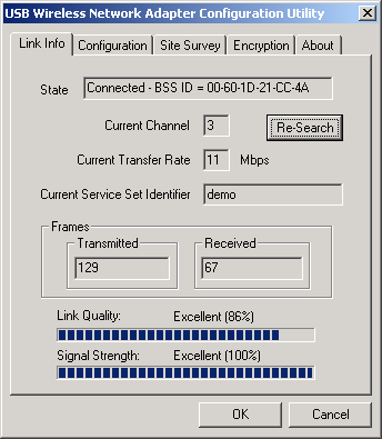В целом приложение полностью аналогично программе настройки для карт компании Linksys и DLink. Видимо, она является разработкой производителя чипов — компании Intersil. Во время работы программы в трее отображается иконка, сигнализирующая о текущем состоянии подключения к беспроводной сети.