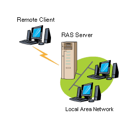 Теперь предположим, что помимо этого нам нужно обеспечить удаленный доступ в WAN группе мобильных пользователей, постоянно переезжающих с места на место. Традиционное решение в этом случае - добавить в нашу сеть серверы RAS (remote access service), для того, чтобы клиенты могли получить доступ к сетевым ресурсам по телефонным линиям.