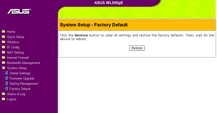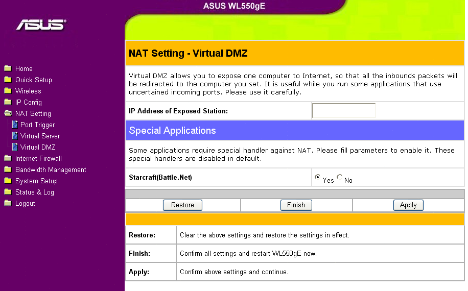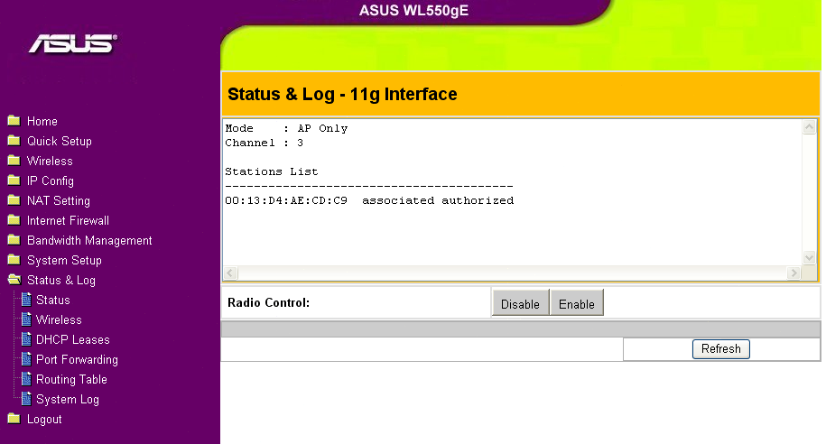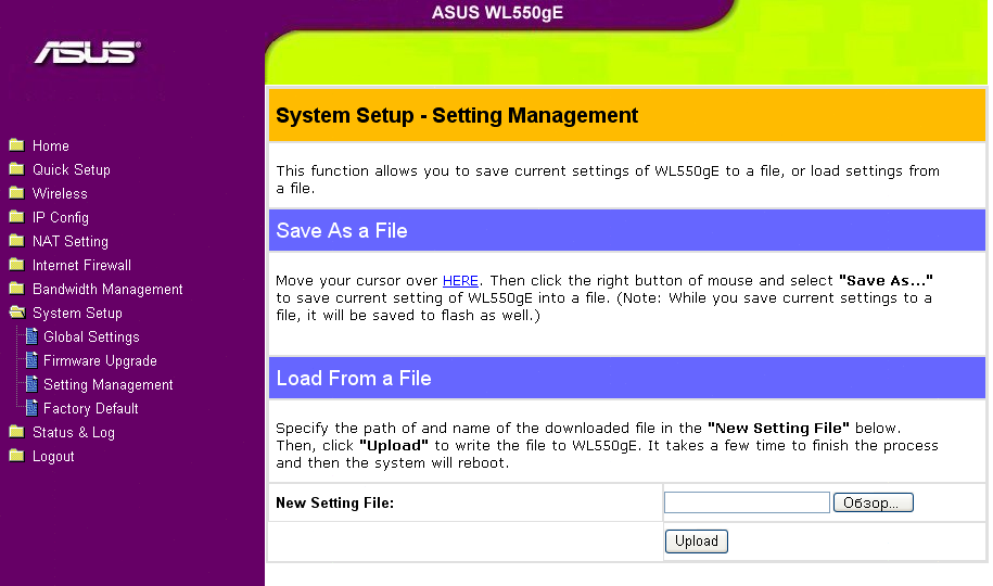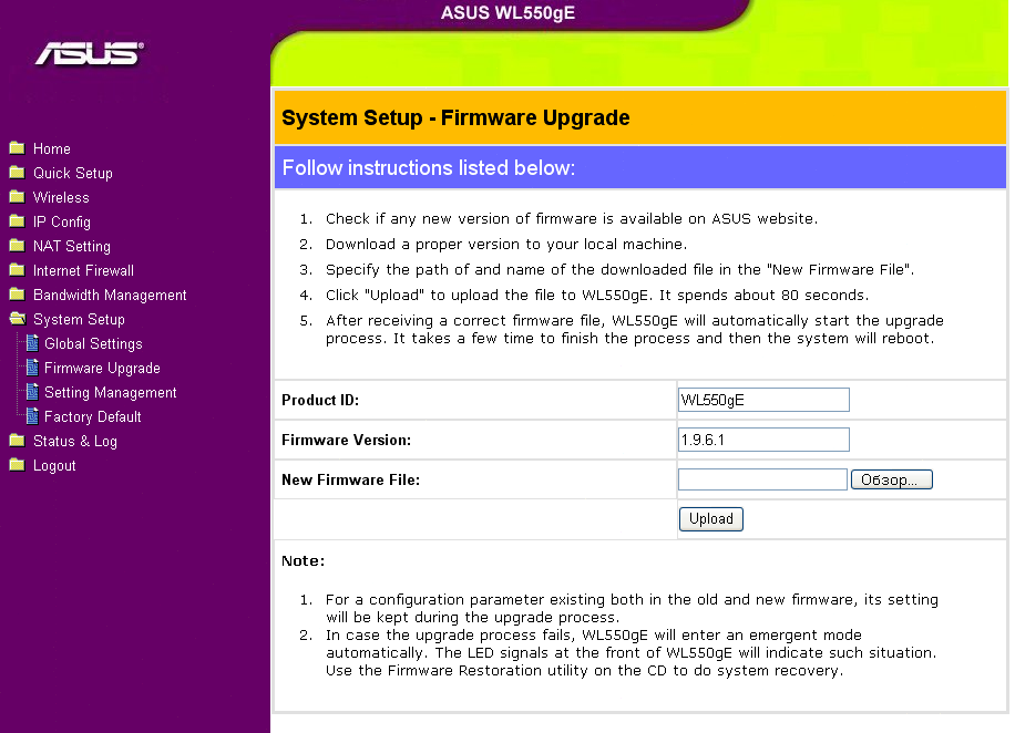 Беспроводной маршрутизатор ASUS WL-550gE - скриншоты WEB-интерфейса настройки