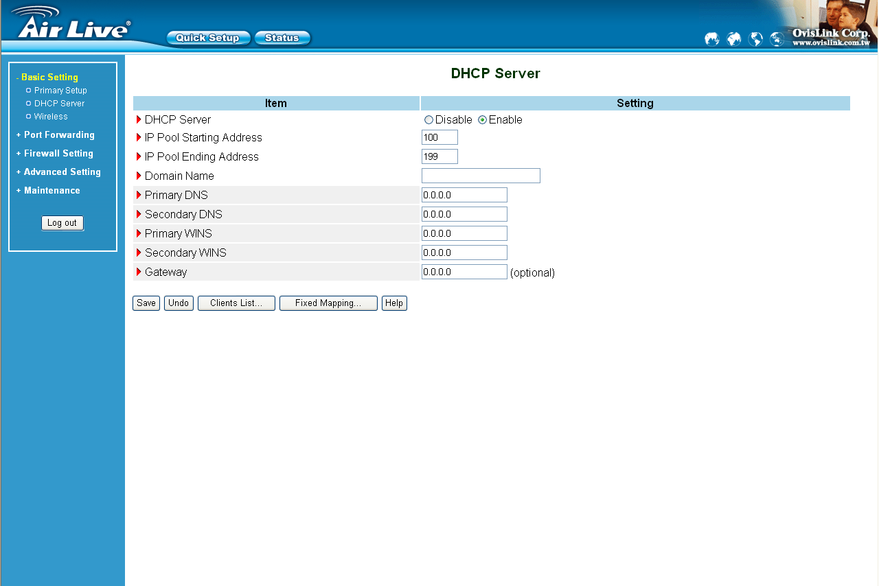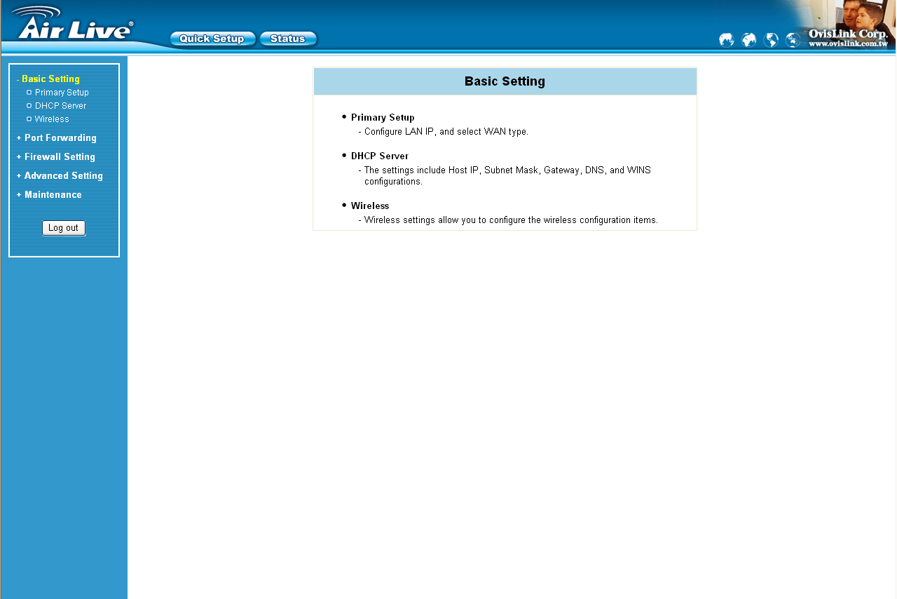 Беспроводной маршрутизатор OvisLink AirLive WMM-3000R - скриншоты WEB-интерфейса устройства