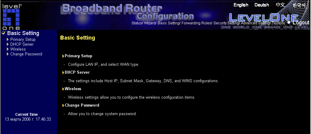 Маршрутизатор Level One WBR-5400 - скриншоты WEB-интерфейса устройства