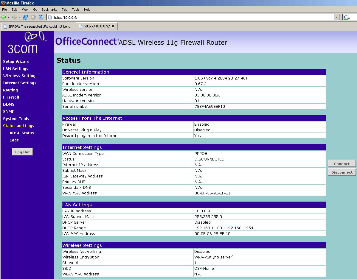 На этом лирическая часть вступления завершена, вернемся к рассмотрению 3Com OfficeConnect ADSL Wireless 11g Firewall Router.