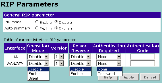 | динамический роутинг | на WAN интерфейсе | возможность отключения | да | |