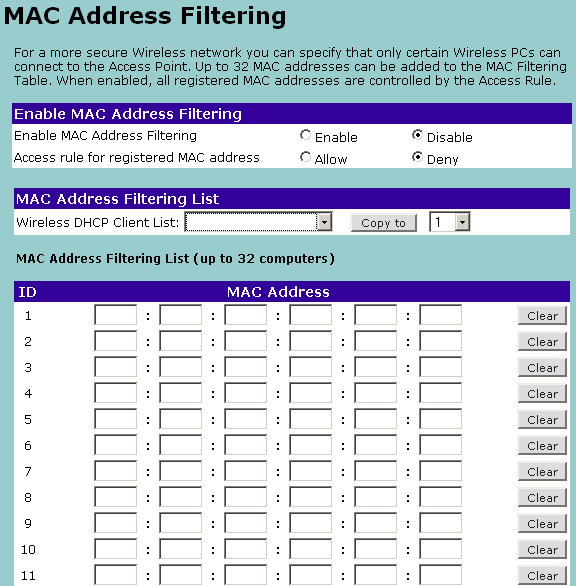 | по MAC адресу | нет (можно лишь определить общий список валидных MAC, которые не будут блокироваться) | |||