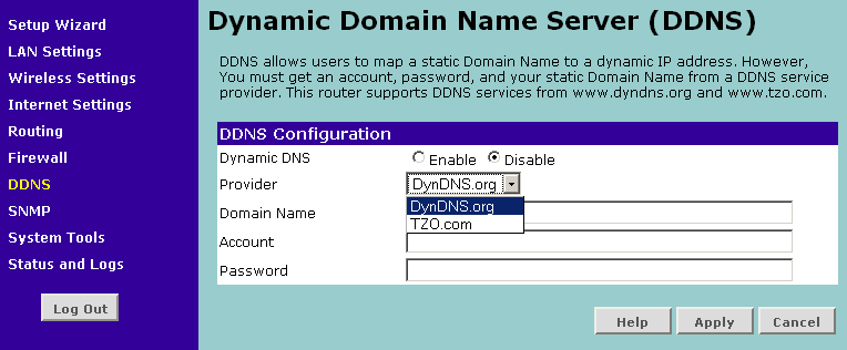 | поддержка динамического DNS | да, 2 заранее предопределенных сервера (DynDNS, TZO) | |||