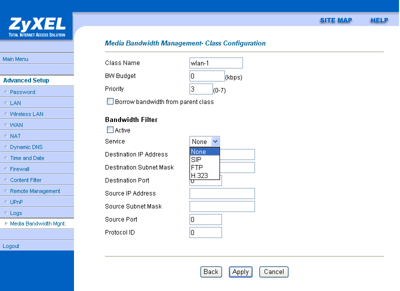 При этом задание ширины полосы пропускания всего лишь информирует устройство о той ширине канала, которое оно может использовать для дочерних классов, а «реальной силы» до задания дочерних классов распределения трафика не имеет. То есть, если мы зададим ширину канала LAN 128 кбит/с, трафик все равно будет идти с максимальной скоростью до тех пор, пока не будут заданы дочерние классы, использующие заданную здесь ширину полосы пропускания.