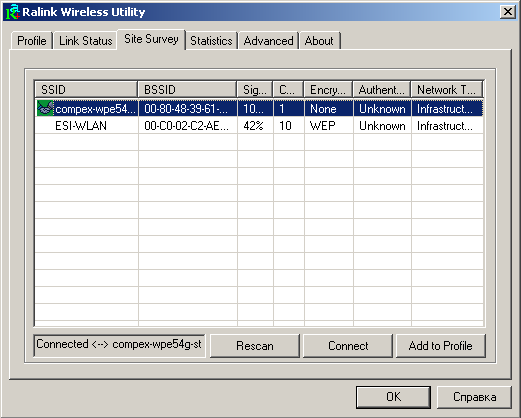 Стоит отметить, что утилита настройки не позволяет подключиться к сети защищенной WPA, зато при использовании Windows Zero Config — это можно сделать без проблем.