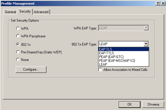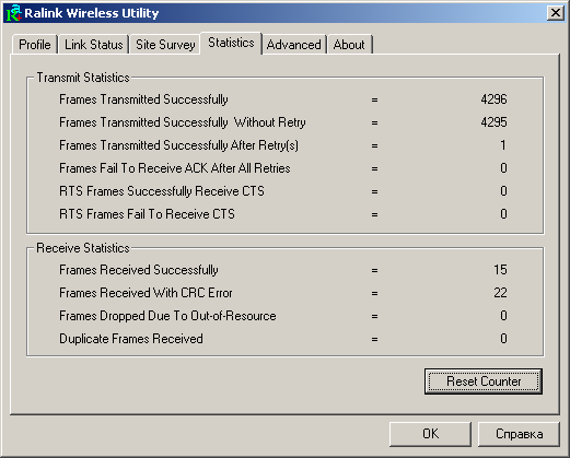 Как я уже говорил выше, настройка адаптера осуществлялась с помощью Windows Zero Config (внутренняя утилита ОС Windows).