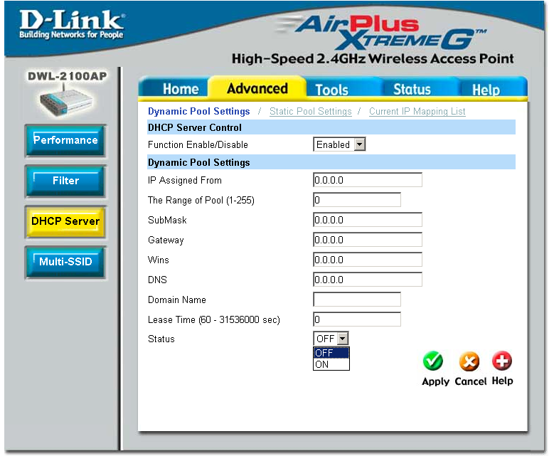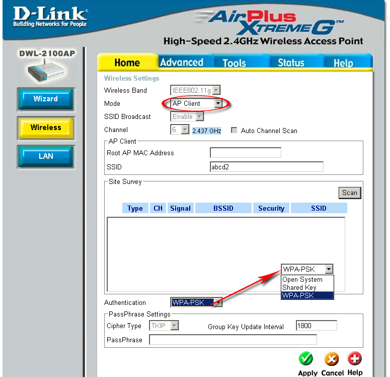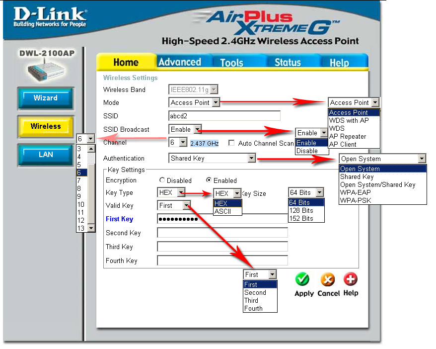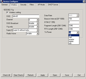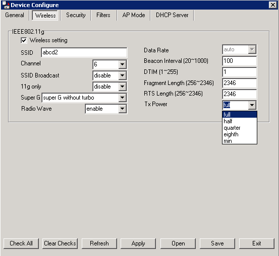 Рассматриваемая точка доступа позволяет организовать беспроводную сеть в 4-х режимах: 802.11g, Super G without Turbo, Super G with static Turbo, Super G with dynamic Turbo.