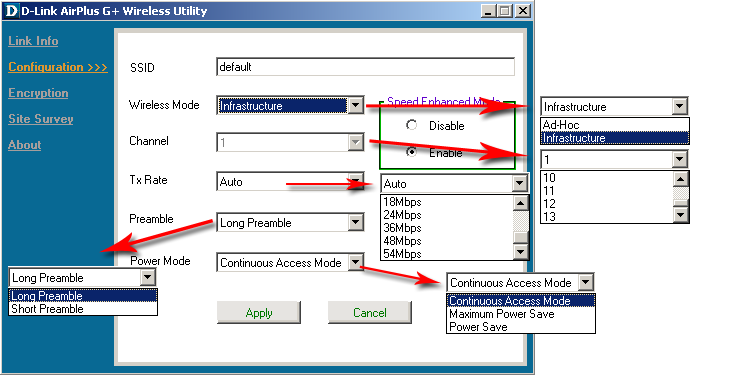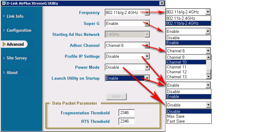 При включении Super G режима в полудуплексном режиме скорость от беспроводных адаптеров к точке доступа ниже, чем в 802.11g режиме.