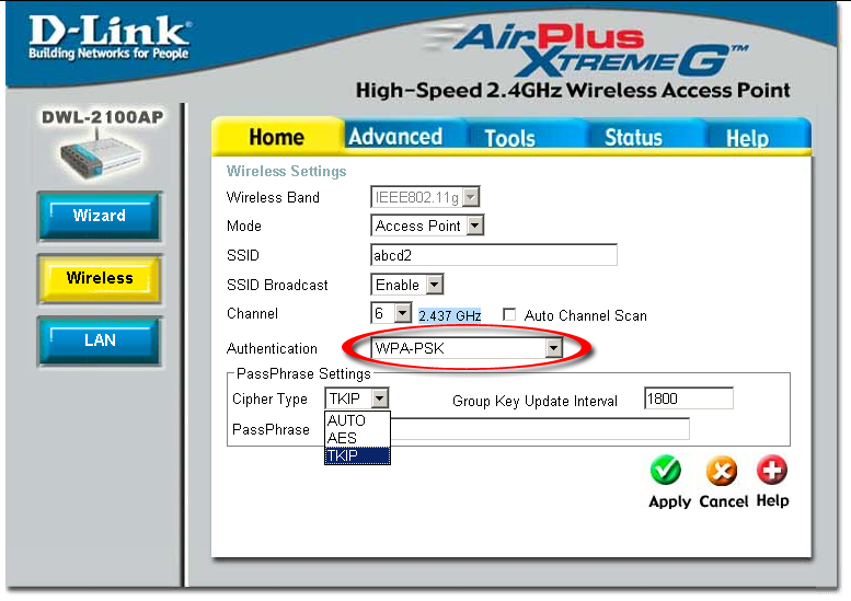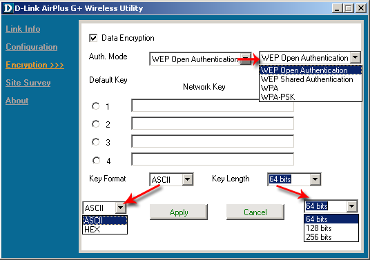 Устройство поддерживает только 152-бит WEP-шифрование, зато обеспечивает большой выбор настроек WPA-шифрования.
