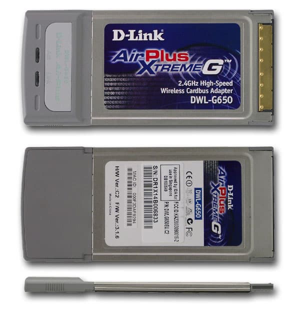 - Cardbus — беспроводной адаптер D-Link DWL-G650