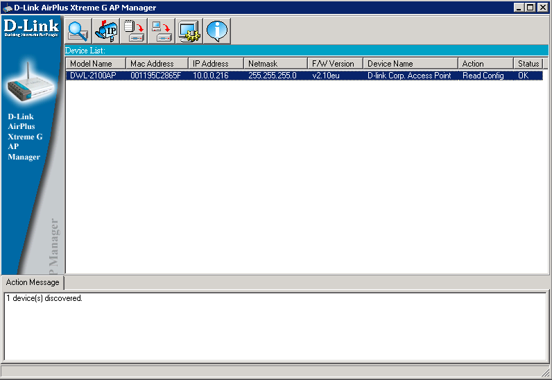 Устройство также можно настроить, используя утилиту D-Link AP Manager (под ОС Windows), использующую для настройки протокол SNMP — она предоставляет доступ к тем же настройкам, что и WEB-интерфейс, поэтому полностью описывать эту утилиту нет смысла. Немногие производители выпускают полнофункциональные утилиты для настройки своего оборудования. Основное достоинство утилиты — она находит точку доступа вне зависимости от ее адреса в сегменте сети, даже если она получает его по DHCP.