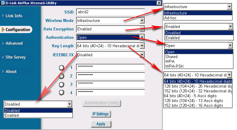 Конфигурация Cardbus-адаптера осуществляется с помощью утилиты настройки, ее скриншоты приведены ниже: