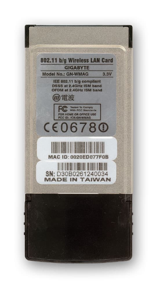 В нашем случае была установлена карта Gigabyte GB-WNAG, работающая в стандартах 802.11g/b.