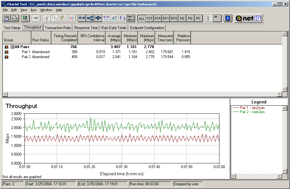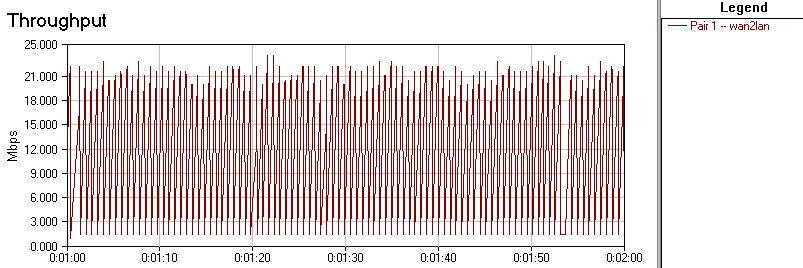 Скорости передачи данных между сегментами LAN и WAN. NetIQ Chariot, Throughput.scr