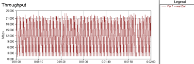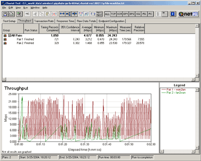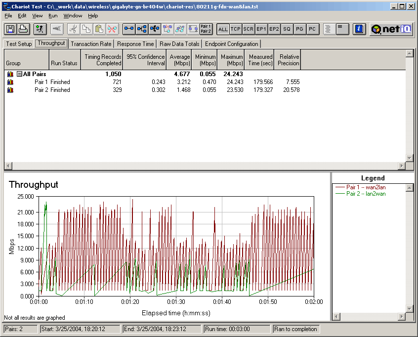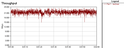 Скорости передачи данных между проводным и беспроводным сегментами в режиме 802.11g. NetIQ Chariot, Throughput.scr