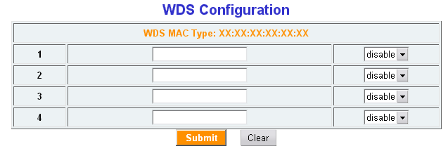 Раздел WDS Configuration позволяет настроить работу роутера в качестве беспроводного моста (при этом возможна одновременная работа роутера в режиме точки доступа и WDS).
