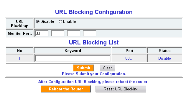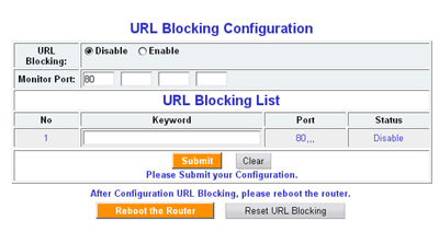 Следующий раздел отвечает за возможность блокирования определенных URL встречающихся в HTTP трафике, проходящем по одному из четырех задаваемых портов.