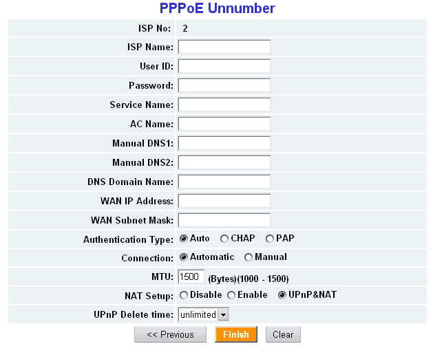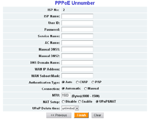 В зависимости от типа сессии, установленного на WAN интерфейсе, будет предложено ввести специфичные для каждого случая параметры.