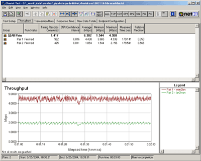 Скорости передачи данных между проводным и беспроводным сегментами в режиме 802.11b. NetIQ Chariot, Throughput.scr