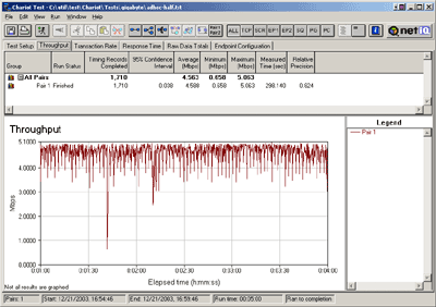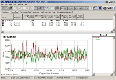Для тестирования использовался программный пакет NetIQ Chariot. Пакет представляет собой консоль управления (которая может находиться на любом компьютере) и набор сенсоров. Последние представляют собой программы, которые устанавливаются на хостах-генераторах и осуществляют генерацию и мониторинг трафика (по определенным шаблонам).