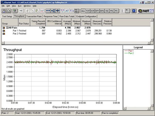 Хорошо видно, что провалы отсутствуют, скорость передачи данных очень стабильна. Причем не только стабильная, но еще и очень высокая, как в полу-, так и в полнодуплексном режимах.