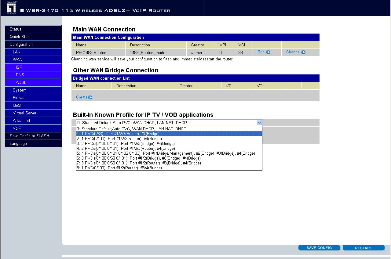ADSL-маршрутизатор позволяет устанавливать до восьми ATM-соединений (с различными значениями пар параметров VPI/VCI) — это позволяет использовать такие возможности, как IPTV (по примеру СтримТВ) — то есть у нас могут работать три порта на предоставление доступа к Интернет, а один порт — на подключение приставки для ТВ. Возможно предоставление и других сервисов.