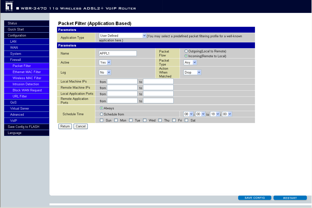 Каждое правило файрвола в устройстве поддерживает расписание работы. При задании правил также указываются: протокол, действие, добавление в логи срабатывание правил… однако стоит учесть, что устройство может хранить логи только внутри себя.