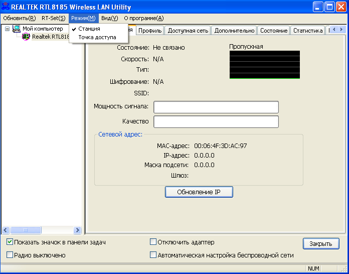 - Не удалось добиться работы беспроводного адаптера в режиме "программной точки доступа"