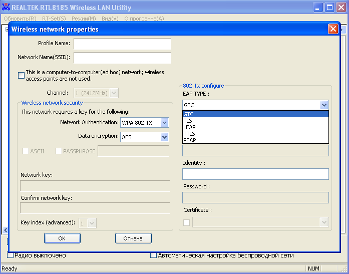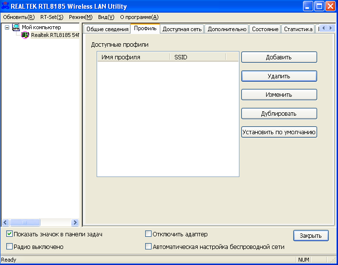 Конфигурацию беспроводного адаптера можно осуществлять с помощью утилиты Windows Zero Config, встроенную в ОС Windows XP или с помощью собственной утилиты настройки, которую мы рассмотрим в данном разделе.