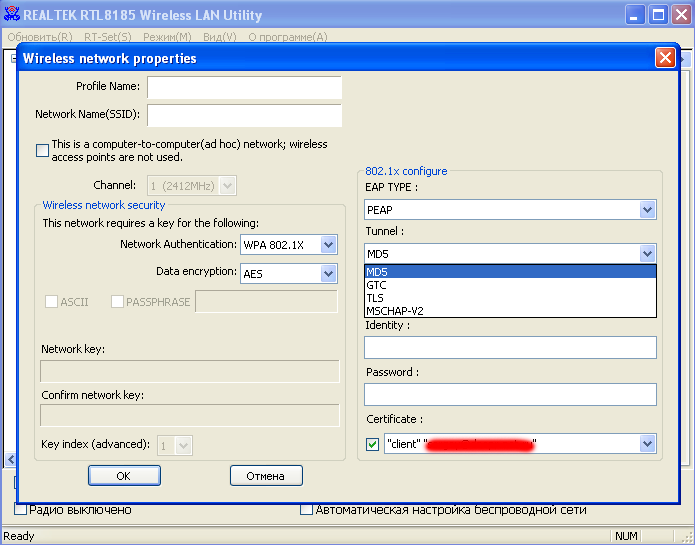 WPA: PEAP, EAP-TLS, TTLS, LEAP - Возможна работа в режиме программной точки доступа с возможностью выбрать сетевые подключения доступные для клиентов беспроводной связи