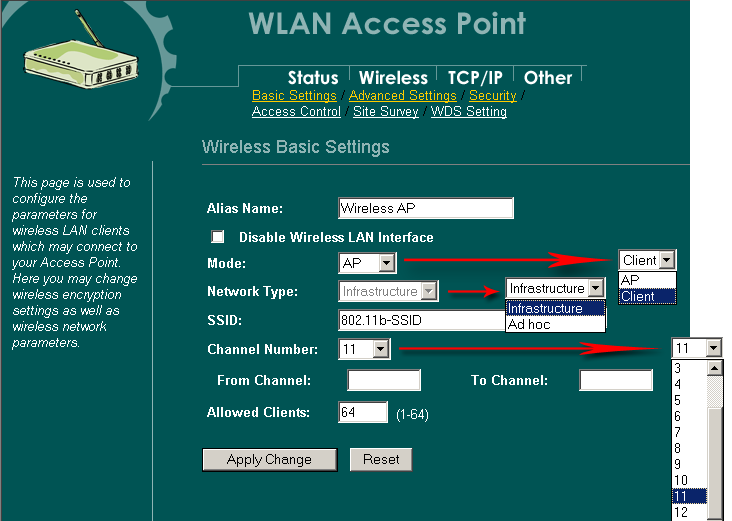 - AP — точка доступа OvisLink WL-1120AP