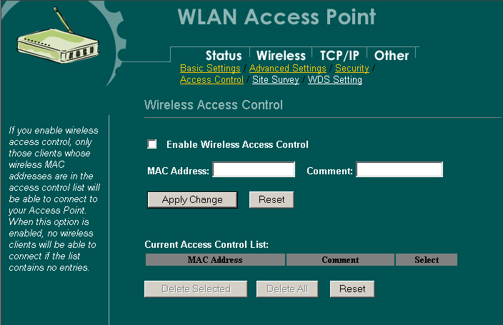 - индикатор использования контроля доступа MAC