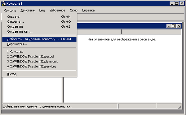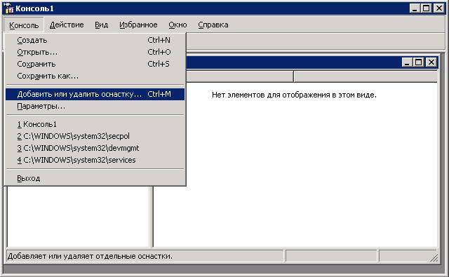Эта консоль позволяет нам добавлять или удалять так называемые "оснастки":