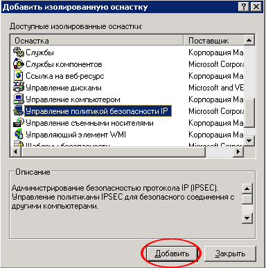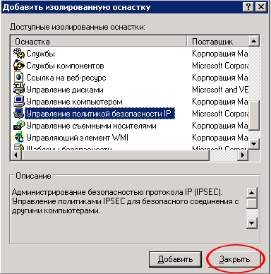 Для управления IPSEC соединениями в Windows XP мы должны добавить оснастку "Управление политикой безопасности IP":