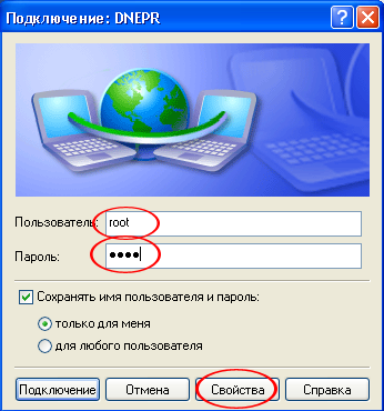 Далее нам нужно ввести имя пользователя и пароль, заданные на роутере ("root" и "1234"), для настройки дополнительных параметров жмем "Свойства" и выбираем вкладку "Безопасность":
