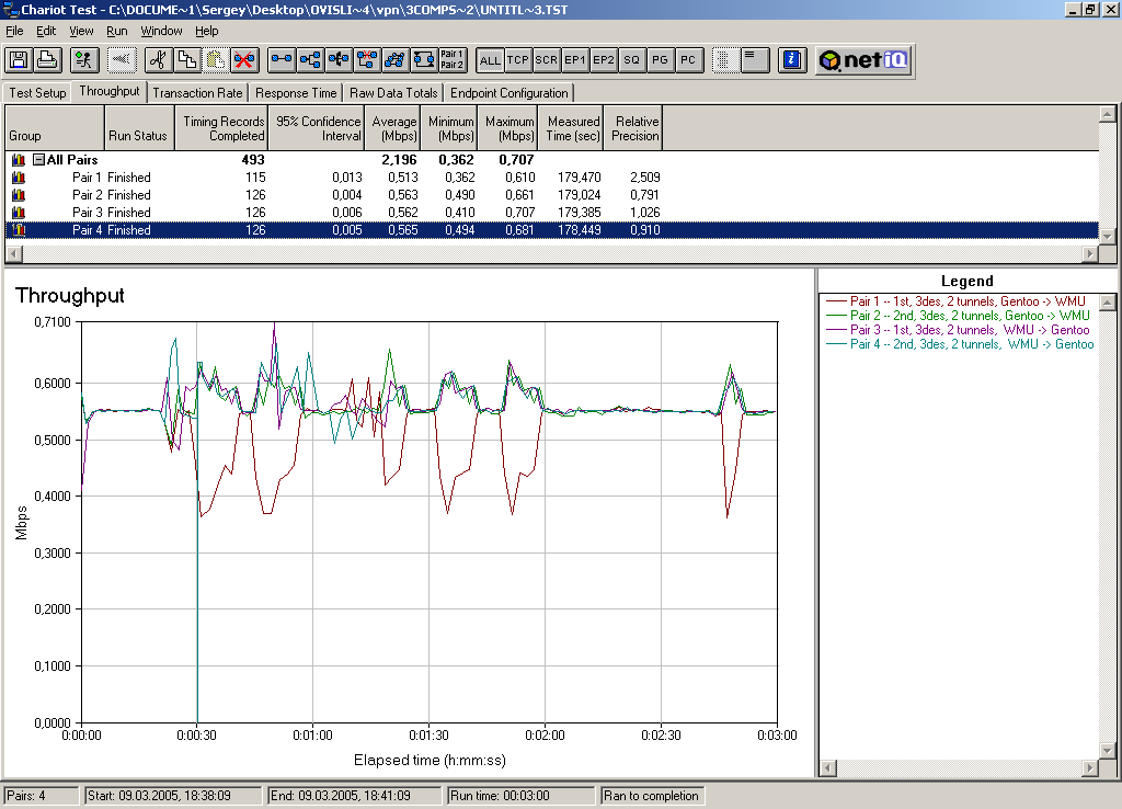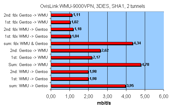 Теперь определим производительность IPSEC при добавлении еще одного туннеля. Все остальные параметры соединения — как и в предыдущем тесте.
