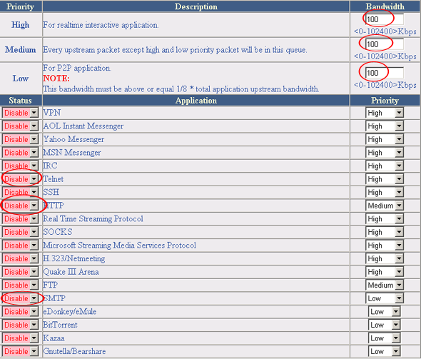 В рассматриваемом устройстве присутствует разграничение пропускной способности по группе IP-адресов или по приложению (протокол иили порт), но возможность редактировать список приложений отсутствует.