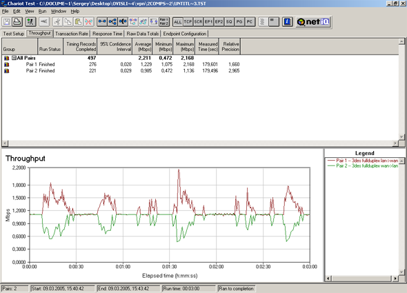 Производительность IPSEC, 2 туннеля, 3DES шифрование: