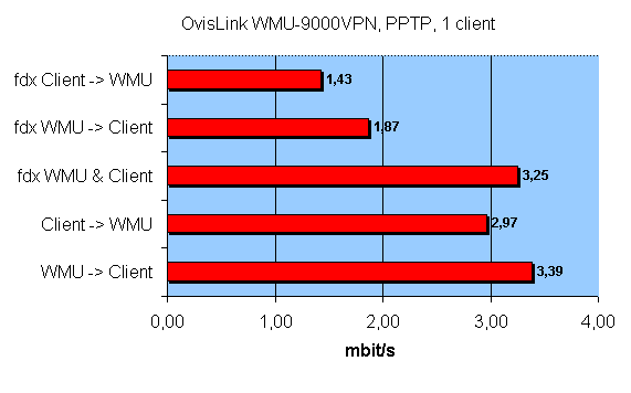 Производительность PPTP соединения определялась следующим образом: PPTP-клиент в WAN-сегменте подключался к PPTP-серверу, коим служил наш роутер, далее производились стандартные тесты на скорость. Напомню, что рассматриваемый роутер не поддерживает шифрование PPTP-соединений.